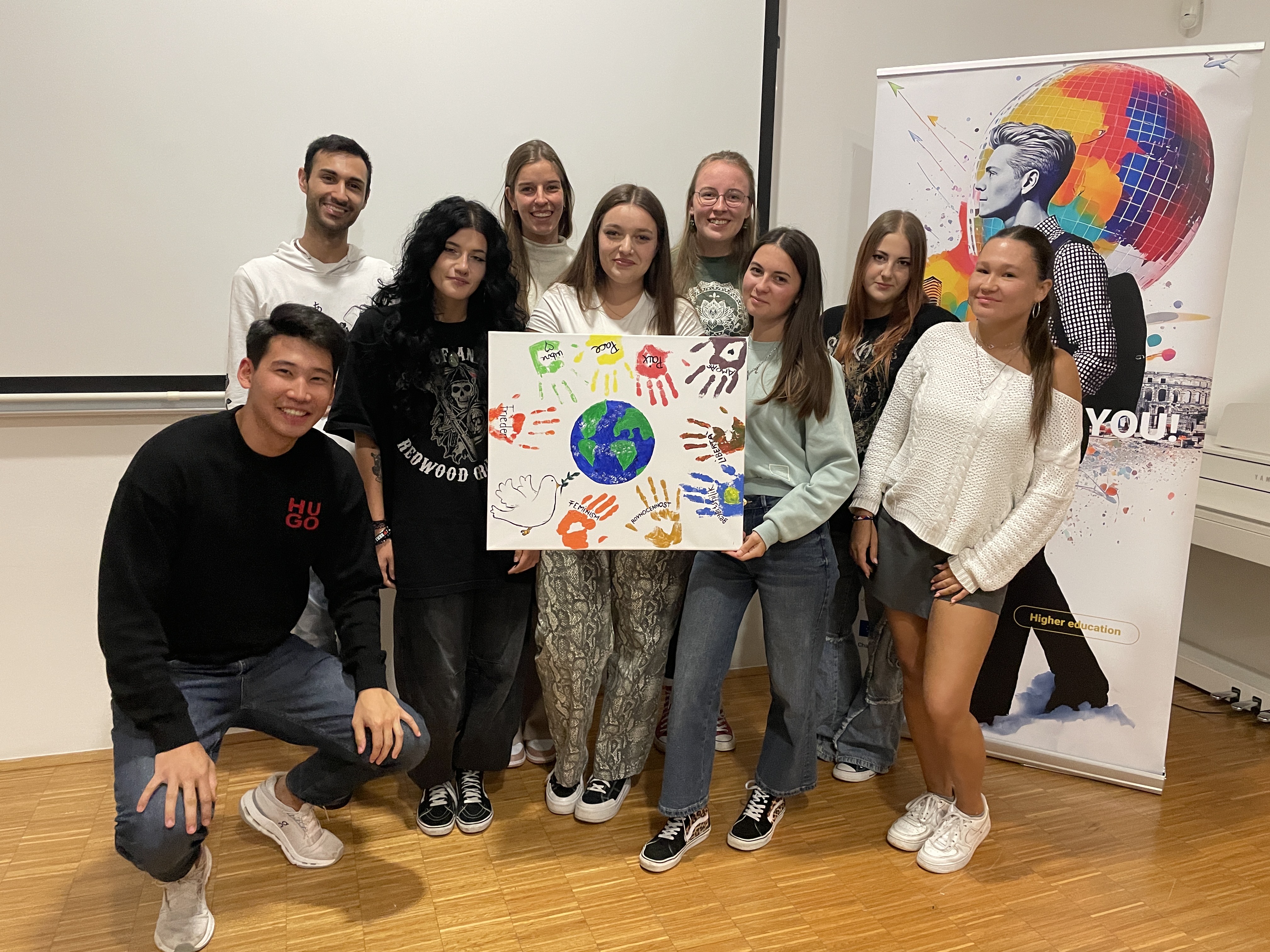 Tim povodom, Ured za partnerstvo i projekte, zajedno s volonterima, organizirao je nekoliko zanimljivih i edukativnih događanja za dolazne Erasmus studente. Među najistaknutijima bila je kreativna radionica izrade Zastava vrijednosti koja se održala 15. listopada u 18:00, a koja je pružila studentima priliku da izraze svoje osobne interpretacije europskih vrijednosti kroz umjetnost. Sljedećeg dana, 16. listopada, studenti su uživali u Historical City Touru u 17:00, kroz koji su imali prilike upoznati povijest grada i njegovo kulturno nasljeđe. Na kraju, 17. listopada, održan je Quiz Night u 18:00, u kojem su studenti testirali svoje znanje o EU vrijednostima, kulturi i povijesti u opuštenom okruženju.